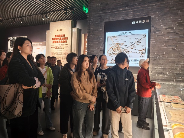 走进纪念馆,庄严肃穆的氛围瞬间将大家带入那段波澜壮阔的抗战岁月。在讲解员的引导下,同志们沿着 “民族危机・救亡兴起”“国共合作・共赴国难”“中流砥柱・抗战灯塔”“日军暴行・惨绝人寰”“浴血疆场・民族壮歌”“得道多助・国际支援”“历史胜利・巨大贡献”“以史为鉴・面向未来” 的展览脉络,逐一参观各个展厅。展柜中,泛黄的抗战家书、锈迹斑斑的步枪刺刀、布满弹痕的军帽水壶,无声诉说着革命先辈的峥嵘岁月;墙壁上,黑白照片里战士们冲锋的身影、百姓们支援前线的场景、沦陷区同胞苦难的面容,生动还原了那段山河破碎却又众志成城的历史;播放厅内,珍贵的影像资料重现了平型关大捷、百团大战等经典战役的激烈场面,让大家仿佛置身于枪林弹雨的战场,深刻体会到 “一寸山河一寸血,十万青年十万军” 的悲壮与豪迈。