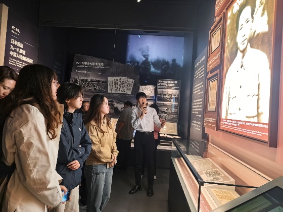 参观过程中,同志们不时驻足凝视、轻声交流。当看到 “九一八事变” 后东北人民自发组织抗日武装、“一二・九运动” 中青年学生高呼爱国口号游行示威的展区时,在场党员纷纷感慨道:“以前在课本上学习抗战历史,总觉得有些遥远,今天亲眼看到这些文物和照片,才真正明白‘爱国’不是一句口号,而是无数先辈用生命和鲜血践行的信仰。”