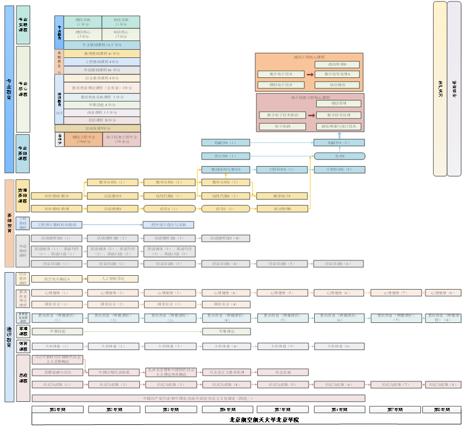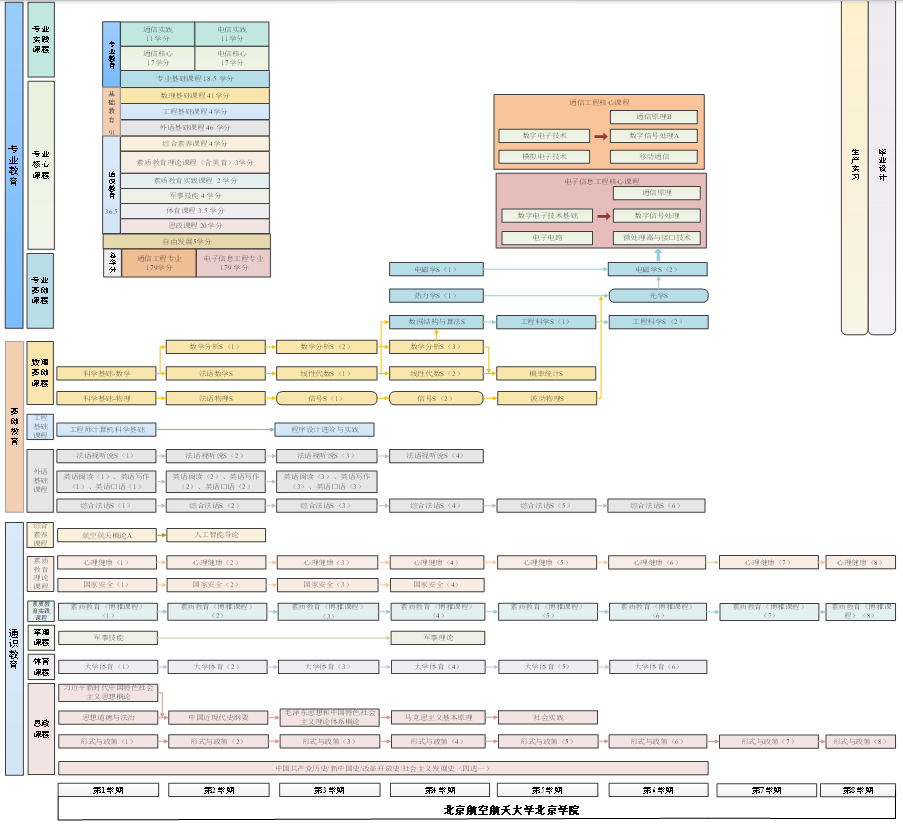 本专业学生遵循北信科-北航的总体培养目标和“三融三通 ”“四强”多元化人才培养模式,以国际化卓越工程师为总体培养目标,重点培养具有“全球视野、系统思维、协同创新”能力,胜任世界多样性和快速变化的国际化通用工程师人才。经过4年学习,学生应掌握本专业的基础理论、知识和基本技能,具备较好的沟通交流、团队协作能力,胜任本专业的相关工作,具有较强实践能力、创新意识与国际化意识,并具有初步的科学研究素养。